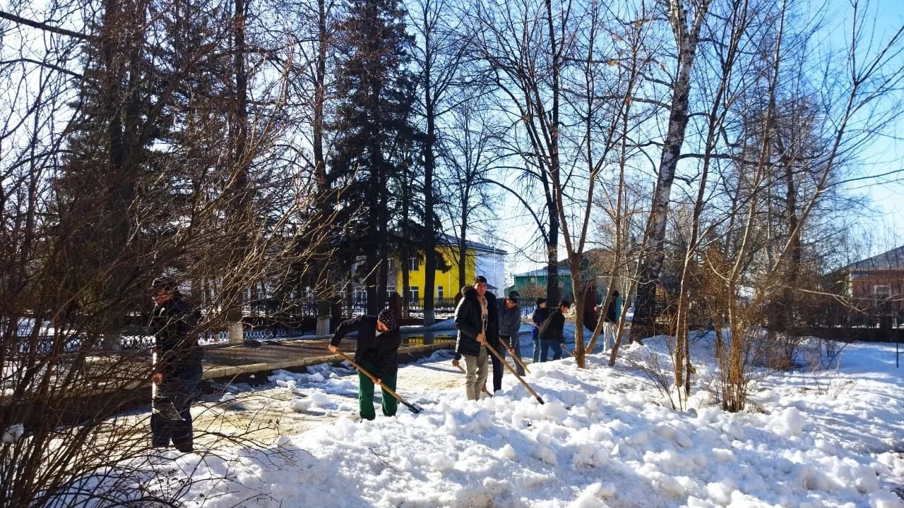 · Расчищали территорию — убирали снег, наводили порядок вокруг сквера, делая общественные пространства уютнее и чище.