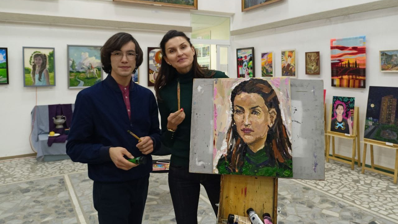 Экскурсию по картинной галерее для прославленной чемпионки провели студент второго курса  факультета педагогики Андрей Кутсамаев и доцент Александр Николаевич Заярнюк. Они познакомили гостью с экспозицией и рассказали о культурной жизни университета.