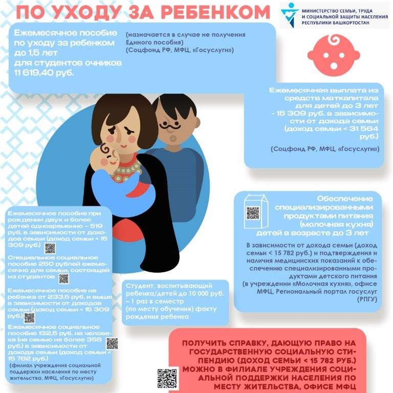 • Материальная финансовая поддержка обучающимся 1 раз за учебный семестр, имеющим несовершеннолетнего ребенка(детей)
